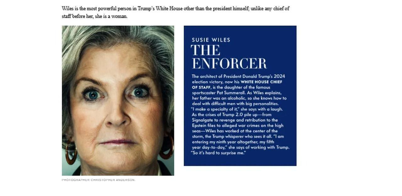 Amerikan Vanity Fair dergisinde yayımlanan Susie Wiles röportajı, ülke kamuoyunda ve Washington’da tartışmalara neden oldu.