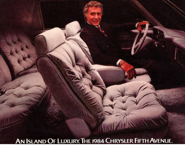 1970’lerin ünlü oyuncusu Ricardo Montalban, 1984 model Chrysler Fifth Avenue’un tanıtımında kamera karşısına geçmişti. Tasarımıyla dikkat çeken Fifth Avenue, Dodge Diplomat’ın lüks versiyonu olarak öne çıkmıştı. Model, 1979’da New Yorker’da opsiyon paketi olarak başlayan Fifth Avenue adını artık kendi başına taşıyor ve deri koltuk opsiyonu ile lüks algısını güçlendiriyordu